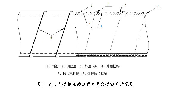 超高分子钢丝网骨架聚乙烯复合管材由直出内管、钢丝和外层华体会huatihui(中国)三种材料复合而成,适用于大、中口径的中、高压管。管材在生产时先在超高管材挤出机上直接挤出改性超高分子量聚乙烯内管,然后再在内管上热熔复合钢丝和超高华体会huatihui(中国)。管材结构如图4所示。